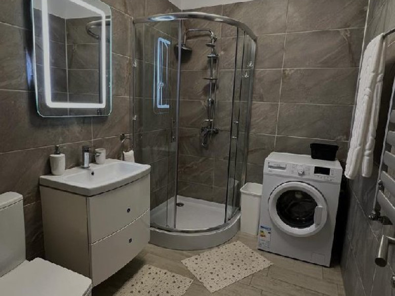 Baie: Cu un design modern si practic, baia este echipata cu o cabina de dus spatioasa si cu o masina de spalat performanta. Fiecare element de design si functionalitate este gandit pentru a satisface toate nevoile zilnice ale locatarilor.