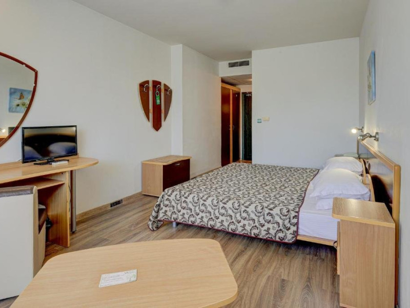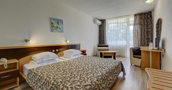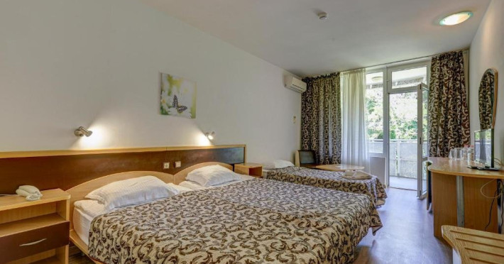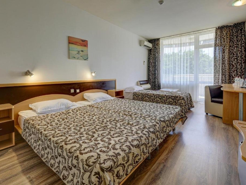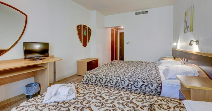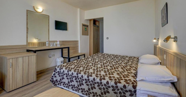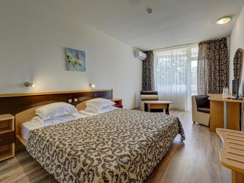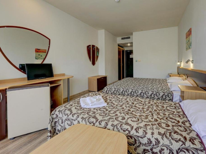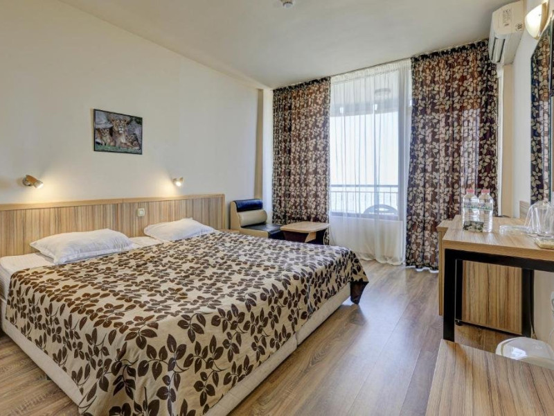 Hotelul Shipka este situat la 200 m de plaja si la 500 m de centrul statiunii. Hotelul ofera o priveliste panoramica minunata asupra intregii statiuni si a marii. Facilitati Construita in 1978, renovata 2015-2016; 4 - partea etaj si 11 parte etaj, ascensoare. Piscine interioare si exterioare, restaurant cu 180 de locuri in interior si 70 de locuri in exterior, lobby bar, bar la piscina, Steak house & BBQ, centru SPA, schimb valutar, seif la receptie (contra cost), salon de infrumusetare, magazin, magazin de excursii, bancomat (bancat), acces gratuit la internet, sala pentru evenimente speciale. Cazare si Mic dejun, Demipensiune, Pensiune completa, All Inclusive Cazare In total 228 de camere. 1 camera potrivita pentru persoane cu dizabilitati. Camere duble in blocul cu 11 etaje sunt pentru max 2+1, aprox. 14 mp; in blocul de 4 etaje camerele sunt de max 2+1, aprox. 18 mp. Apartamente (max 2+2, aprox. 28 mp), cu vedere la mare. Toate unitatile sunt cu paturi twin, A/C, WC, cada sau dus, uscator de par, balcon, telefon, TV prin satelit, mini-frigider, Internet Wi-Fi. Copii Sectiune pentru copii la piscina in aer liber, loc de joaca, patuturi si scaune inalte in restaurante. Sport si divertisment Gratuit: piscina interioara si exterioara, sezlonguri si umbrele de soare langa piscina, acces Wi-Fi, fitness. Pentru oaspetii AI: sauna, jacuzzi; baie de aburi tenis de masa, biliard, Air Hockey si Jagga, minifotbal Cu plata: tratamente SPA, salon de infrumusetare Animalele de companie sunt acceptate contra cost si dupa confirmarea hotelului - pana la 5 kg. - 10 liv. pe zi Parcare Parcare gratuita pentru oaspetii hotelului, spatiu limitat - parcare si garaj fara paza