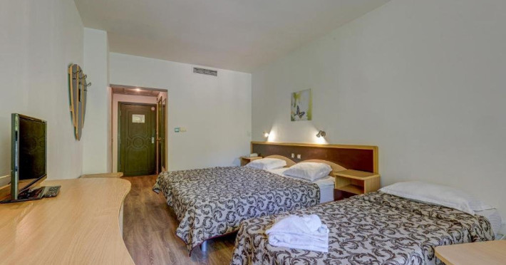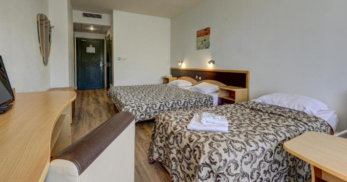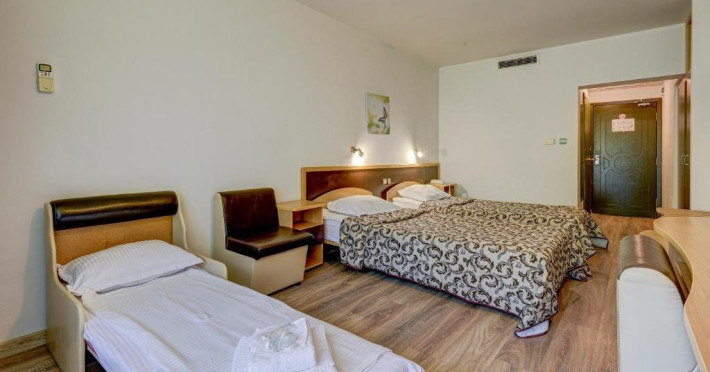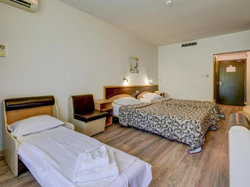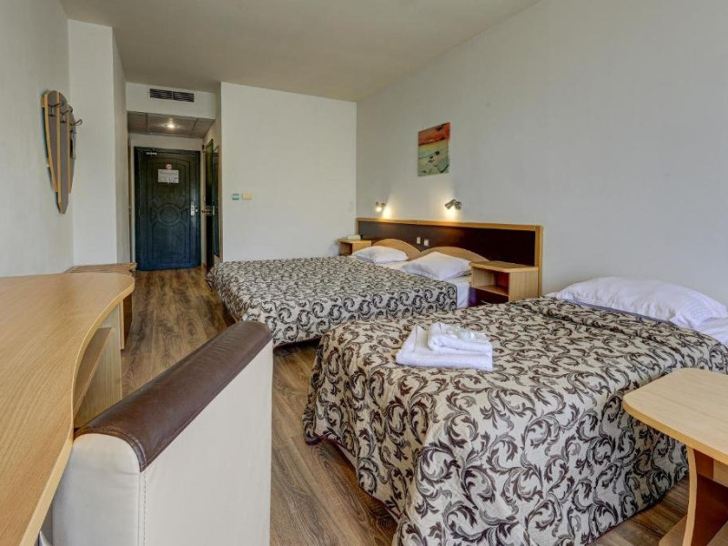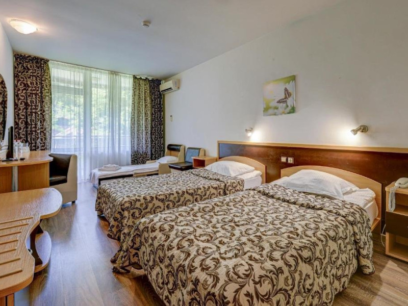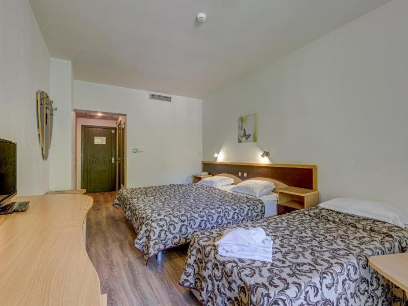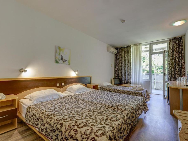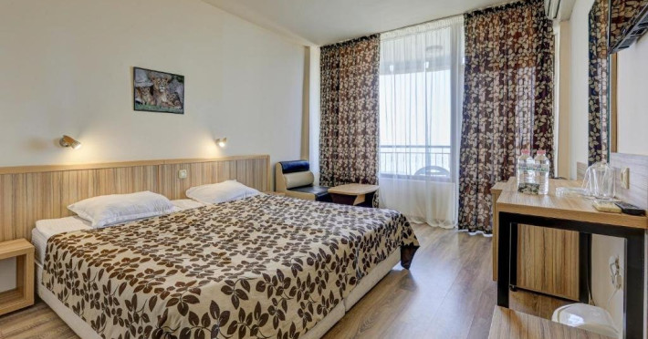 Hotelul Shipka este situat la 200 m de plaja si la 500 m de centrul statiunii. Hotelul ofera o priveliste panoramica minunata asupra intregii statiuni si a marii. Facilitati Construita in 1978, renovata 2015-2016; 4 - partea etaj si 11 parte etaj, ascensoare. Piscine interioare si exterioare, restaurant cu 180 de locuri in interior si 70 de locuri in exterior, lobby bar, bar la piscina, Steak house & BBQ, centru SPA, schimb valutar, seif la receptie (contra cost), salon de infrumusetare, magazin, magazin de excursii, bancomat (bancat), acces gratuit la internet, sala pentru evenimente speciale. Cazare si Mic dejun, Demipensiune, Pensiune completa, All Inclusive Cazare In total 228 de camere. 1 camera potrivita pentru persoane cu dizabilitati. Camere duble in blocul cu 11 etaje sunt pentru max 2+1, aprox. 14 mp; in blocul de 4 etaje camerele sunt de max 2+1, aprox. 18 mp. Apartamente (max 2+2, aprox. 28 mp), cu vedere la mare. Toate unitatile sunt cu paturi twin, A/C, WC, cada sau dus, uscator de par, balcon, telefon, TV prin satelit, mini-frigider, Internet Wi-Fi. Copii Sectiune pentru copii la piscina in aer liber, loc de joaca, patuturi si scaune inalte in restaurante. Sport si divertisment Gratuit: piscina interioara si exterioara, sezlonguri si umbrele de soare langa piscina, acces Wi-Fi, fitness. Pentru oaspetii AI: sauna, jacuzzi; baie de aburi tenis de masa, biliard, Air Hockey si Jagga, minifotbal Cu plata: tratamente SPA, salon de infrumusetare Animalele de companie sunt acceptate contra cost si dupa confirmarea hotelului - pana la 5 kg. - 10 liv. pe zi Parcare Parcare gratuita pentru oaspetii hotelului, spatiu limitat - parcare si garaj fara paza