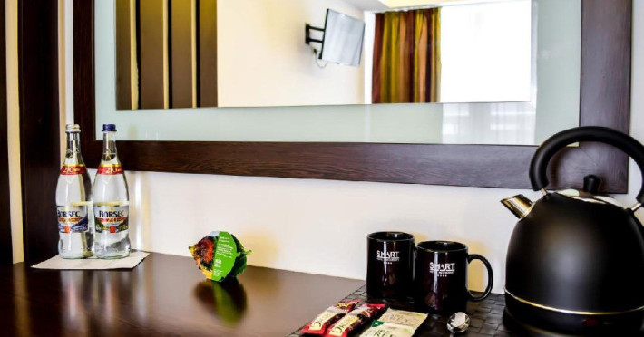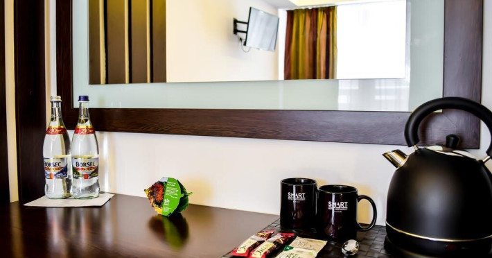 Hotelul Smart se aflÄ la 1,5 km de centrul oraÈului Sinaia Åi oferÄ camere cu baie privatÄ, balcon Èi vedere la MunÈii Bucegi. OaspeÈii au la dispoziÈie o saunÄ cu masaje Åi o salÄ de fitness. Toate camerele sunt dotate cu minibar, TV Èi WiFi gratuit. BÄile includ articole de toaletÄ. OaspeÅ£ii pot face grÄtare pe terasa acoperitÄ sau pot savura preparate româneÅti tradiÅ£ionale în restaurantul primitor, decorat cu grinzi din lemn. Hotelul Smart are o salÄ de mic dejun separatÄ Åi o terasÄ Ã®n aer liber, aflatÄ Ã®n grÄdinÄ. OaspeÈii se pot relaxa jucând tenis de masÄ, darts Èi jocuri de societate. Gara din Sinaia este situatÄ la 3 km de Hotel Smart, iar proprietatea pune la dispoziÈie o parcare gratuitÄ supravegheatÄ.