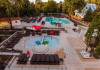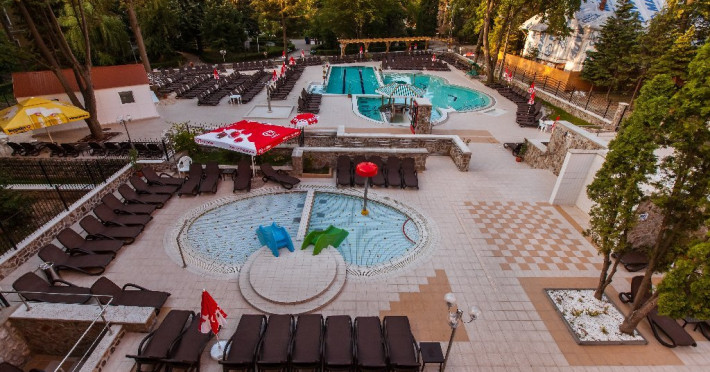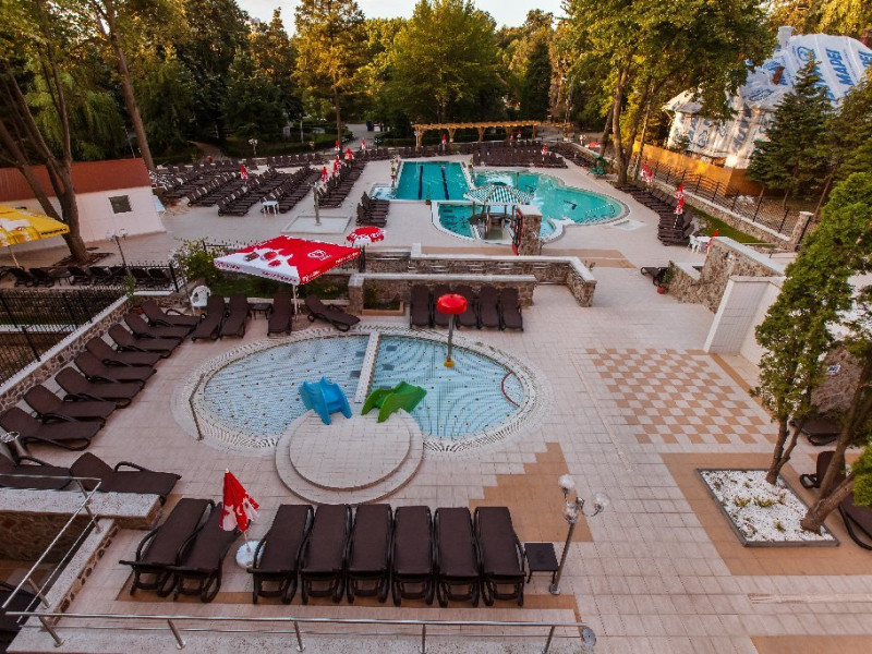 Piscinainterioara cu apa termala si cele 4 piscine in aer liber (piscine exterioare cuapa termala si cu instalatii acvatice de hidromasaj pentru adulti, piscina deinot, piscina pentru copii si bazin de relaxare) functioneaza tot timpulanului. In sezon se asigura program de animatie: spuma party, aquagym,aquazumba, jocuri pentru copii.