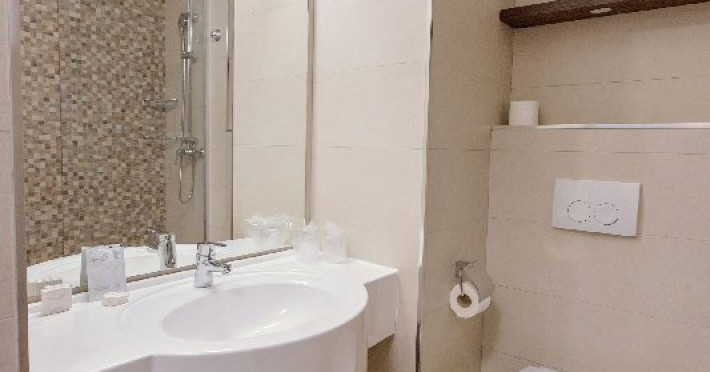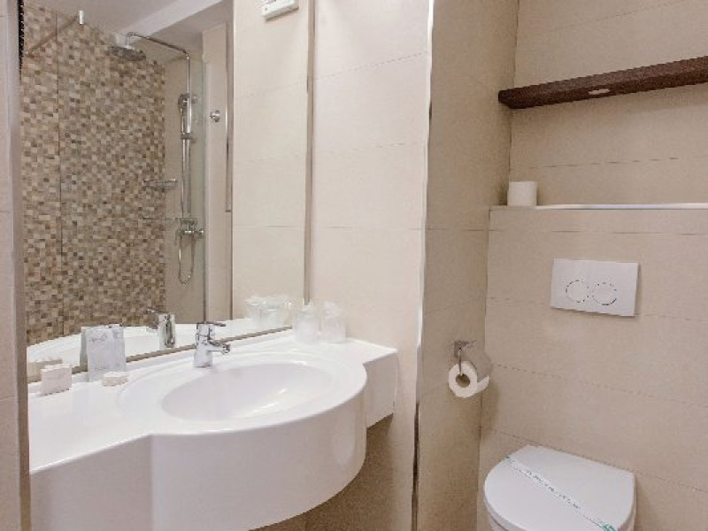 Fiecare camera este dotata cu balcon, aer conditionat, televizor, cablu TV, telefon, incalzire centrala, frigider, baie cu dus sau cada si uscator de par.