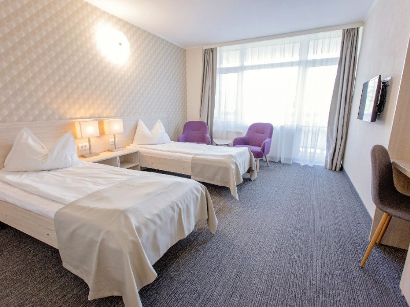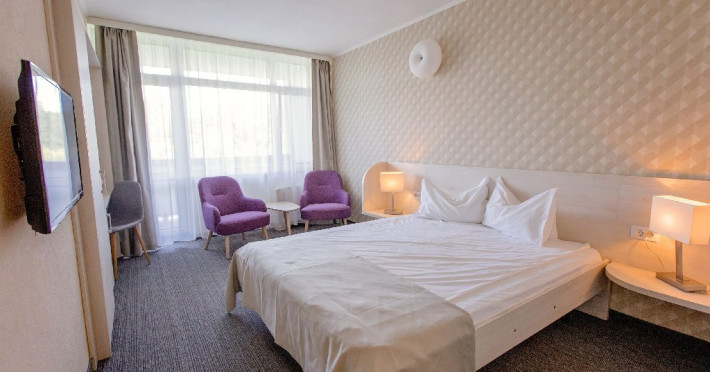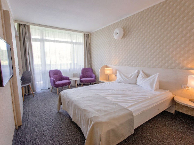 Facilitati generale:receptie deschisa nonstop, parcare, 2 restaurante, bar de zi 42 locuri, snack bar, pool bar, sala de mic dejun, 4 piscine exterioare,1 piscina interioara, sauna, sala de fitness, sah in aer liber, terasa, spatiu de plaja cu sezlonguri, bar, baza de tratament, 3 sali de conferinte, loc de joaca pentru copii, tenis de masa, birou de turism si camera de bagaje.