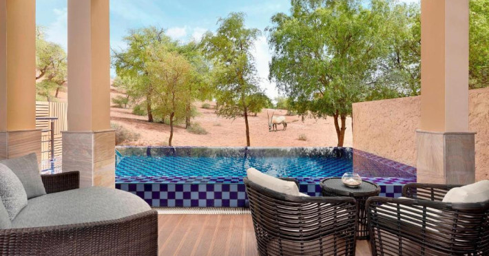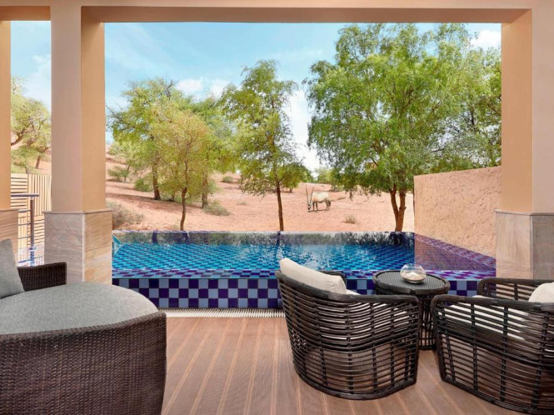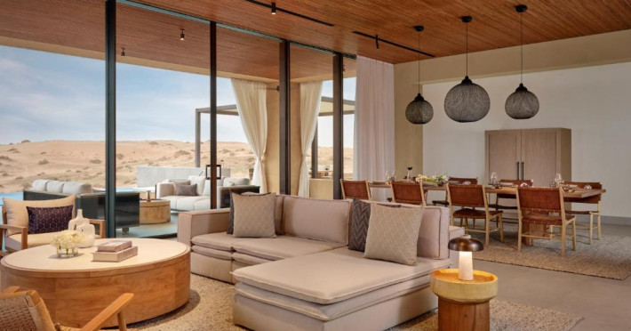 Resortul se intinde pe o rezervație naturală privată de 500 de hectare, unde vilele private cu piscină oferă intimitate deplină și priveliști spectaculoase asupra dunelor. Fiecare vilă dispune de terasă spațioasă și piscină infinity cu vedere la deșert.