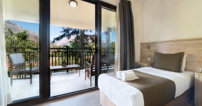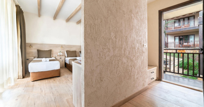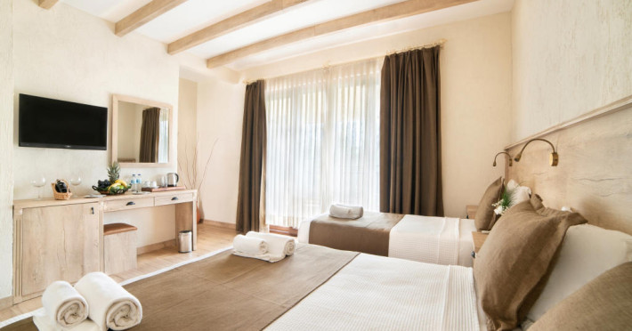 Dotari camere: Camerele hotelului dispun de: telefon, TV, seif, minibar, facilitati pentru prepararea ceaiului si cafelei, acces internet, aer conditionat centralizat, baie cu cabina de dus, halat si papuci, balcon.