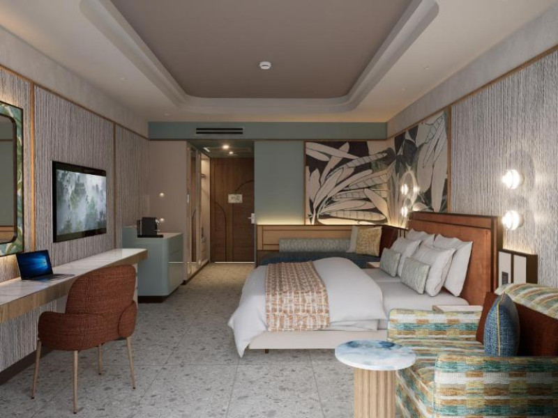 Cazare elegantă: Trendy Perge Resort & Suites din Aksu oferă o experiență de 5 stele cu facilități spa, centru de fitness, terasă la soare, grădină, baie in aer liber, restaurant, bar, teren de tenis și o piscină sezonieră in aer liber.