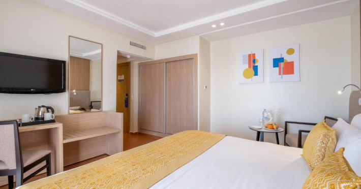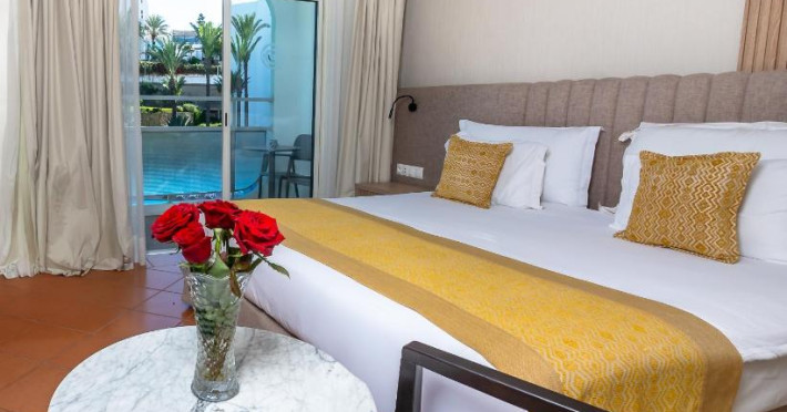 Camerele sunt decorate in nuanțe calde și sunt dotate cu aer condiționat, TV prin satelit și balcon. Facilitățile hotelului includ o piscină exterioară spațioasă inconjurată de șezlonguri și umbrele, un restaurant principal cu preparate internaționale și marocane, precum și un bar la piscină unde poți savura cocktailuri răcoritoare.