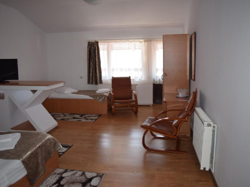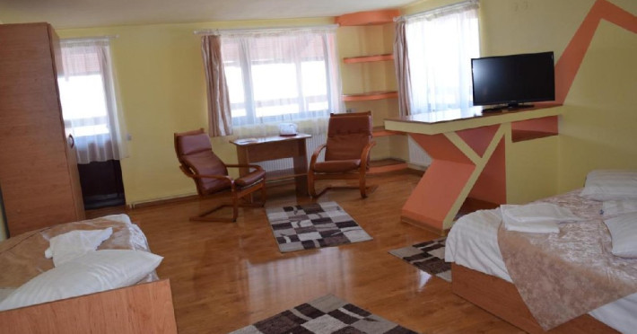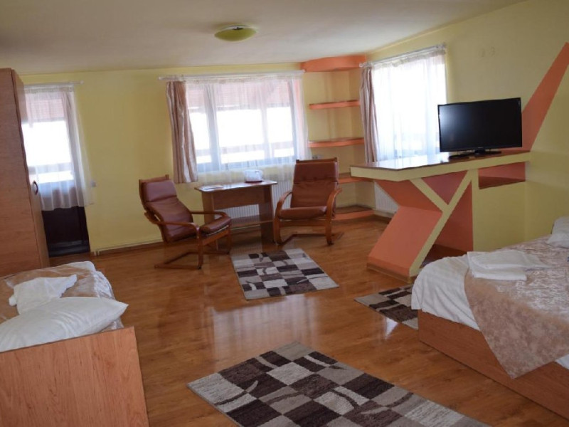 CLUB VILA BRAN este situat la cca 600 m de la intrarea in Bran dinspre Brasov si la cca 800 m de Castelul Bran. Clubul se intinde pe o suprafata de aproximativ 60.000 mp si detine 14 vile cu capacitati antre 1 si 24 camere, Casuta Scufitei Rosii si Casuta lui Bambi, 1 restaurant, sali de conferinta, 1 biblioteca, baza de agrement, magazin de suveniruri si birou de informare turistica. Camerele si apartamentele dispun de balcon, grup sanitar propriu cu cada/cabina dus, TV. Baza de agrement este pusa gratuit la dispozitia turistilor cazati in club (in limita disponibilitatilor si a functionalitatii): 1 Piscina exterioara incalzita cu jacuzzi (sezonul de vara); 1 Piscina exterioara, incalzita, pentru copii, cu instalatii de joaca (sezonul de vara); 1 Piscina interioara, incalzita, cu jacuzzi; Valea cu povesti - vizite si activitati la Casuta lui Mos Craciun, Casuta Albei-ca-Zapada, Castelul lui Fat Frumos, Castelul Balaurului, Casa Vrajitoarei, Zona Arctica Club Vila Bran, Castelul Printesei si Barlogul lui Culita, Sala de jocuri (sah, table, sjoelen, air - hockey, biliard, bank - shot); Mese de biliard, mese de ping - pong, petanque, darts, echitatie in manej(cal, ponei); Parc natural cu hamace si bancute; Teren de tenis, mini teren de baschet, terenuri de fotbal; Amfiteatru - jocuri, concursuri, Parc istoric (12 statui reprezentand regi si domnitori din istoria noastra, incepand de la Burebista pana la Regina Maria) Restaurant cu specific de stana, cu priveliste spre Castelul Bran, Muntii Piatra Craiului si Muntii Bucegi. Decorul este cat se poate de rustic, cu busteni de lemn acoperiti in tencuiala, doua seminee suspendate, fantana interioara si un spatiu amenajat ca o pestera. In interiorul restaurantului se afla un loc de joaca amenajat special pentru copii. Camera SPATIOASA matrimoniala/twin Camera cu balcon, Wi-Fi gratuit, TV prin cablu si miniracitor, baie proprie. Acest tip de camera se regaseste in vile situate : - atat in partea de jos a complexului, aproape de receptie, de aici se urca pe scari pentru a se ajunge la restaurant/piscina exterioara/sala de jocuri, aproximativ 7-10 minute - cat si in partea de sus a complexului, aproape de restaurant/piscina exterioara/sala de jocuri Facilitatile camerei: incalzire, uscator de par, toaleta, cada, TV, canale prin cablu, miniracitor, balcon/terasa WiFi gratuit este disponibil in toate camerele. Suprafata camerei: 28 mp Camera MEDIE twin/matrimoniala Camera cu balcon, Wi-Fi gratuit, TV prin cablu si miniracitor, baie proprie. Acest tip de camera se regaseste in vile situate in partea de jos a complexului, aproape de receptie, de aici se urca pe scari pentru a se ajunge la restaurant/piscina exterioara/sala de jocuri, aproximativ 7-10 minute. Facilitatile camerei: incalzire, uscator de par, toaleta, cada, TV, canale prin cablu, miniracitor, balcon/terasa WiFi gratuit este disponibil in toate camerele. Suprafata camerei: 20 mp Apartament DIMENSIUNE medie Apartament de dimensiune medie, cu zona de relaxare separat, care are 2 camere: dormitor cu pat matrimonial si living cu canapea. Accesul WIFI este gratuit. In apartamente se pot caza, maxim 2 adulti si 1 sau 2 copii cu varsta sub 14 ani. Acest tip de APARTAMENT se regaseste in vile situate : - atat in partea de jos a complexului, aproape de receptie, de aici se urca pe scari pentru a se ajunge la restaurant/piscina exterioara/sala de jocuri, aproximativ 7-10 minute - cat si in partea de sus a complexului, aproape de restaurant/piscina exterioara/sala de jocuri Facilitatile camerei: incalzire, uscator de par, toaleta, cada, TV, canale prin cablu, miniracitor, balcon/terasa Apartament DIMENSIUNE minima Apartament de dimensiune minima, cu zona de relaxare separat, care are 2 camere: dormitor cu pat matrimonial si living cu canapea. Accesul WIFI este gratuit. In apartamente se pot caza, maxim 2 adulti si 1 sau 2 copii cu varsta sub 14 ani. Acest tip de APARTAMENT se regaseste in vile situate : - in partea de jos a complexului, aproape de receptie, de aici se urca pe scari pentru a se ajunge la restaurant/piscina exterioara/sala de jocuri, aproximativ 7-10 minute Facilitatile camerei: incalzire, uscator de par, toaleta, cada, TV, canale prin cablu, miniracitor, balcon/terasa