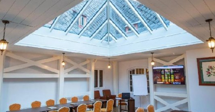 INFORMATII GENERALE Vila Camelia este situata in apropiere de Castelul Peles din Sinaia. DESCRIERE UNITATE DE CAZARE Construita in 1884 de unul dintre arhitectii Castelului Peles, Vila Camelia are influente bavareze, cu amenajari bogate si accesorii caracteristice din lemn. Vila imbina eleganta istorica cu facilitati moderne, oferind o atmosfera calda si intima. Camerele pastreaza farmecul de epoca, iar oaspetii se pot bucura de gradina frumos amenajata sau de restaurantul care serveste preparate traditionale. FACILITATI UNITATE Hotelul pune la dispozitia turistilor restaurant, parcare, internet Wi-Fi. DESCRIERE CAMERE Camera dubla standard este dotata cu un pat matrimonial sau doua paturi twin. Camera dubla superioara este mai spatioasa decat cea standard si dispune de doua paturi twin sau un pat matrimonial. Suita include doua dormitoare separate. Apartamentul dispune de doua dormitoare, un living separat unde se afla o canapea extensibila si o chicineta. Toate camerele dispun de TV, telefon, internet Wi-fi si baie proprie. LOCALIZARE Vila Camelia este situata in apropiere de Castelul Peles din Sinaia. ATRACTII TURISTICE Muzeul Peles, Pelisor, Manastirea Sinaia, Muzeul Bucegi, Cazinoul Sinaia, Casa Memoriala George Enescu. POLITICI Nu se accepta animale de companie. FACILITATI EVENIMENTE Vila ofera o sala de conferinta cu o capacitate de aproximativ 20 locuri.