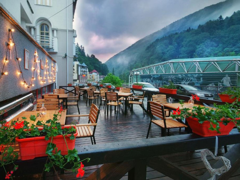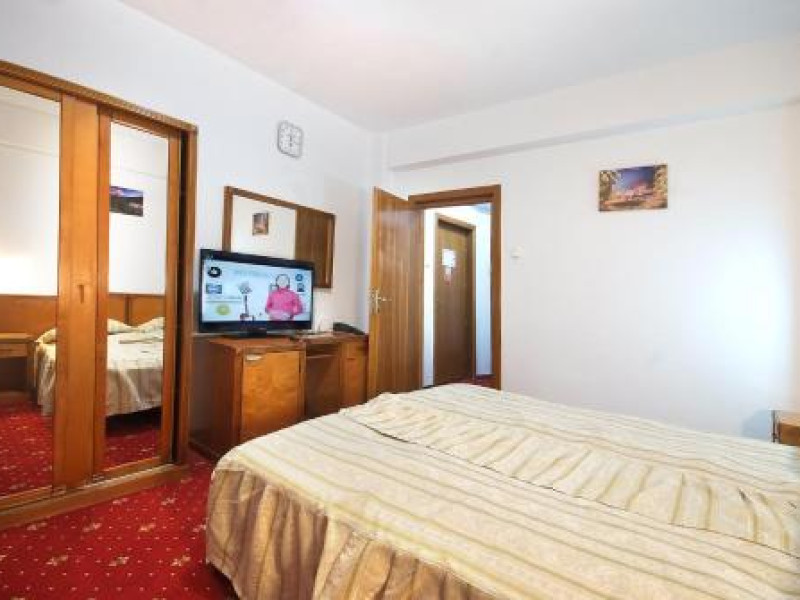 CONTACT Numar telefon: 0234348301, Adresa email: office@hotelteleconstructia.ro Asezat in inima statiunii, Complexul Turistic Vila Teleconstructia te asteapta pentru a-ti oferi o gama diversificata de servicii. Cu o baza materiala de ultima generatie complexul se adreseaza mai multor segmente de clientela, putand asigura prin diversitatea seviciilor pe care le pune la dispozitia turistilor atat petrecerea unor vacante sau minivacante, cat si organizarea de intruniri de afaceri, simpozioane, traininguri sau alte activitati de acest gen care se adreseaza clientelei de afaceri. Complexul este compus din spatii de cazare, restaurant, sala de consiliu, piscina, sauna, sala fitness si sala polivalenta (tenis de masa, tenis de camp). Cazarea se poate asigura in camere duble cu 2 paturi sau cu pat matrimonial, miniapartament cu 2 camere si 3 paturi individuale, apartament cu dormitor matrimonial si living cu canapea extensibila dubla. Restaurant Vila Teleconstructia va pune la dispozitie o bucatarie cu produse rafinate si variate. Meniurile din cadrul restaurantului din Slanic Moldova sunt adaptate fiecarui client, preparatele culinare fiind ca la mama acasa. Complexul Turistic Vila Teleconstructia dispune de un teren de tenis acoperit iar partia de schi si snowboard se afla la doar 1100 m de locatia noastra. Sala de fitness se afla la etajul 1 din corpul B al Complexului si este echipata pentru un antrenament complet. Accesul la sala de fitness, terenul de tenis de camp si tenis de masa este gratuit. Complexul dispune de cea mai mare piscina acoperita din statunea Slanic Moldova. Apa este mentinuta la temperatura de 30 grade C iar temperatura ambientala la 30 grade C. Piscina este de dimensiuni semiolimpice, avand lungimea de 21 m si latimea de 9 m. Adancimea acesteia porneste de la 1.60 m si ajunge la 3.20 m. Accesul la piscina este gratuit. Vara se deschide si terasa pentru plaja putand astfel admira peisajul montan direct din piscina. Complexul Turistic Vila Teleconstructia dispune de o sala de conferinte pentru sedinte mici, cu o capacitate de 30 de locuri.