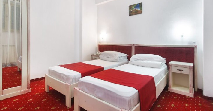 DESCRIERE CAMERE Cazarea se poate asigura in camere duble cu 2 paturi sau cu pat matrimonial, miniapartament cu 2 camere si 3 paturi individuale (tripla), apartament cu dormitor matrimonial si living cu canapea extensibila dubla (suita).