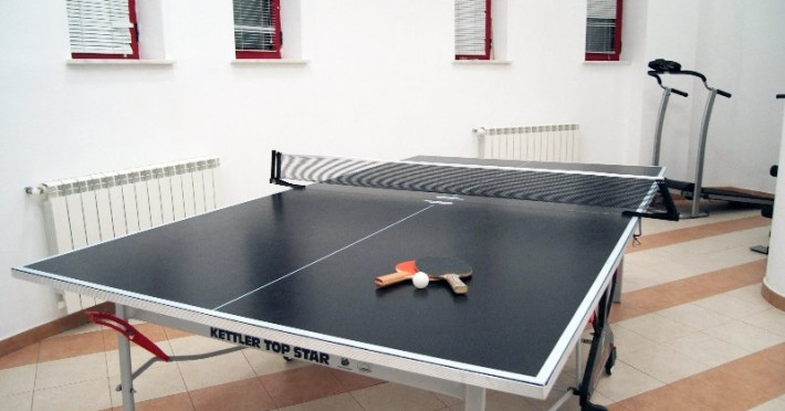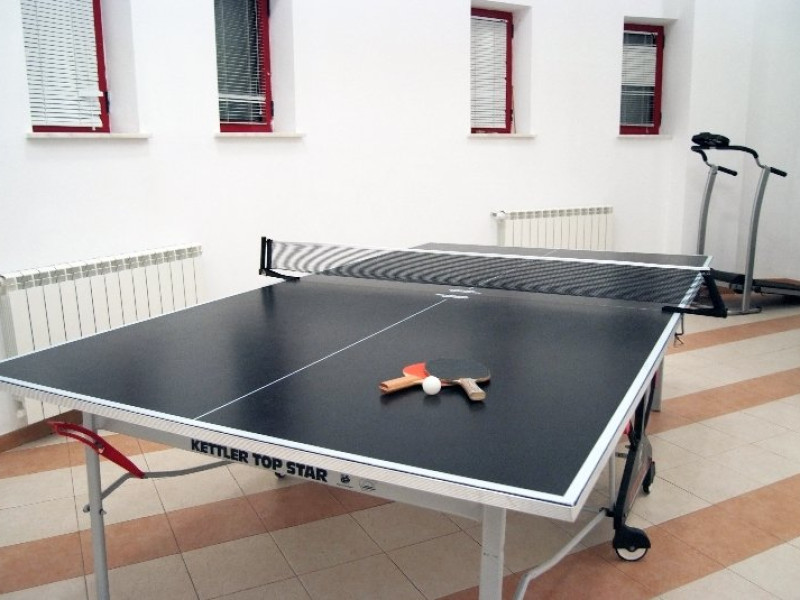 FACILITATI UNITATE Complexul Turistic Vila Teleconstructia dispune de un teren de tenis acoperit iar partia de schi si snowboard se afla la doar 1100 m de locatie. Sala de fitness se afla la etajul 1 din corpul B al Complexului si este echipata pentru un antrenament complet. Accesul la sala de fitness, terenul de tenis de camp si tenis de masa este gratuit. Complexul dispune de cea mai mare piscina acoperita din statunea Slanic Moldova. Apa este mentinuta la temperatura de 30 grade C iar temperatura ambientala la 30 grade C. Piscina este de dimensiuni semiolimpice, avand lungimea de 21 m si latimea de 9 m. Adancimea acesteia porneste de la 1.60 m si ajunge la 3.20 m. Accesul la piscina este gratuit. Vara se deschide si terasa pentru plaja putand astfel admira peisajul montan direct din piscina.