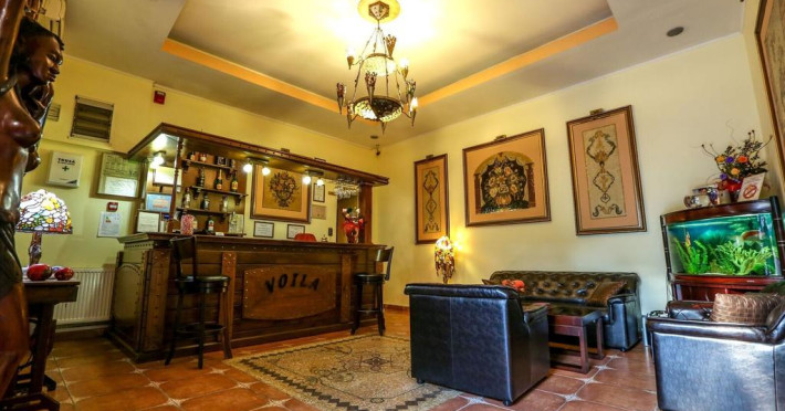 In Constanta (Old Town Constanta). With a stay at Voila Inn Constanta in Constanta (Old Town Constanta), youll be within a 5-minute walk of Geamia Hunchiar Mosque and Great Synagogue. This hotel is 4.9 mi (7.8 km) from Mamaia Beach and 0.7 mi (1.1 km) from Victory Monument. Make yourself at home in one of the 15 air-conditioned rooms featuring minibars and flat-screen televisions. Complimentary wireless Internet access keeps you connected, and cable programming is available for your entertainment. Private bathrooms with bathtubs or showers feature complimentary toiletries and hair dryers. Conveniences include safes, housekeeping is provided daily, and irons/ironing boards can be requested. Satisfy your appetite for lunch or dinner at the hotels restaurant, or stay in and take advantage of the room service. Quench your thirst with your favorite drink at the bar/lounge. Continental breakfasts are available daily from 7 AM to 10 AM for a fee. Take advantage of recreation opportunities such as a sauna or take in the view from a rooftop terrace and a garden. This hotel also features complimentary wireless Internet access and concierge services.