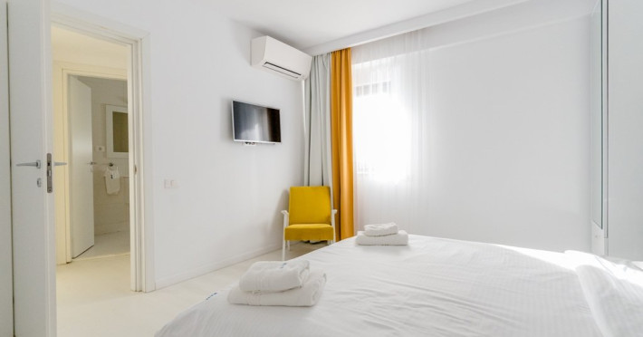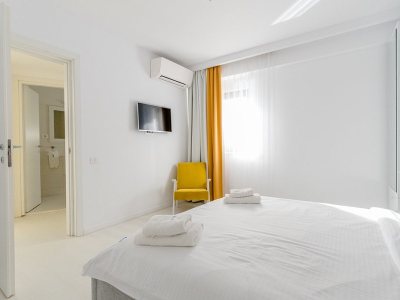 Dotari camere Apartamentul cu 2 camere este compus din dormitor cu pat matrimonial si living cu canapea extensibila), bucatarie de tip open space, complet mobilata si utilata (frigider, plita pe gaz, cuptor cu microunde, esprssor de cafea cu cafea boabe, vesela, tacamuri), aer conditionat, TV, Internet, suport uscator de rufe, masa de calcat si fier de calcat, uscator de par, mobilier pe balcoane/ terase. Capacitate maxima: 4 persoane. Adresa: str. Prelungirea D19, nr. 12, etaj 2, ap. 9 Penthouse-ul are 2 dormitoare cu pat matrimonial, living cu canapea extensibila, 3 bai, bucatarie de tip open space, complet mobilata si utilata (frigider, plita pe gaz, cuptor cu microunde, cuptor electric, esprssor de cafea cu cafea boabe, vesela, tacamuri), aer conditionat, TV ,Internet, suport uscator de rufe, masa de calcat si fier de calcat, uscator de par, mobilier pe balcoane/ terase.Capacitate maxima: 6 persoane.Adresa: str. Prelungirea D19, nr. 12, etaj 6, ap. 24. Orele de check-in si check-out: check-in: 15.00, check-out: 11.00.
