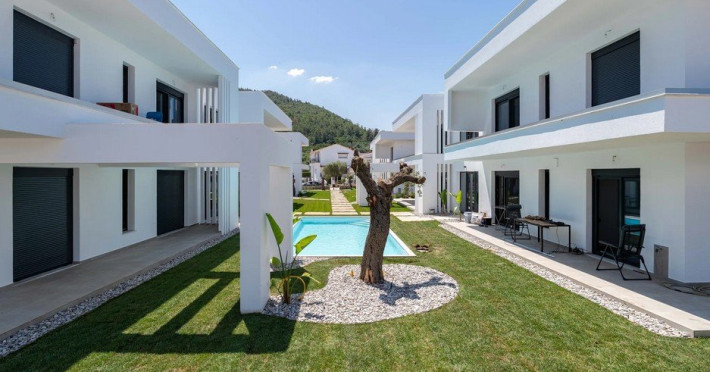 Situat la doar 150 de metri de apele turcoaz stralucitoare ale insulei Thassos, White Dream ofera o evadare eleganta si linistita in inima orasului Skala Rachoniou. Acest complex rezidential modern este perfect situat pentru cei care cauta atat relaxare pe plaja, cat si acces facil la magazinele din zona, tavernele traditionale si viata locala vibranta. Amplasat pe trei parcele frumos amenajate, White Dream ofera o colectie de apartamente cu un dormitor proiectate cu grija, ideale pentru cupluri, familii mici sau calatori individuali care cauta o retragere linistita pe insula. Interioarele sunt luminoase si confortabile, cu linii arhitecturale curate care reflecta eleganta moderna a complexului. Inconjurat de verdeata luxurianta, complexul se concentreaza in jurul unei piscine comune primitoare, perfecta pentru racorire, socializare sau pur si simplu relaxare la soare. Indiferent daca savurati o cafea de dimineata pe balconul privat sau plecati sa explorati insula, White Dream este baza dvs. pentru o viata insulara fara griji. White Dream - evadarea dvs. eleganta la doar cativa pasi de mare.