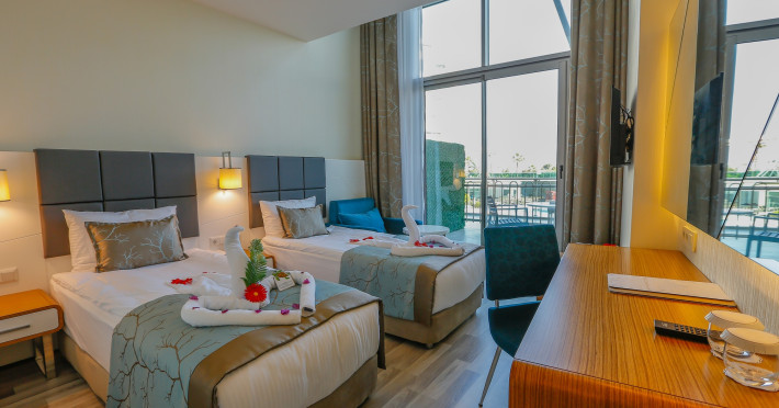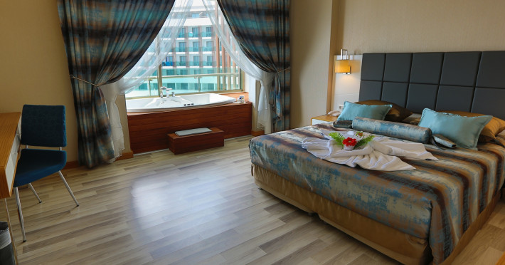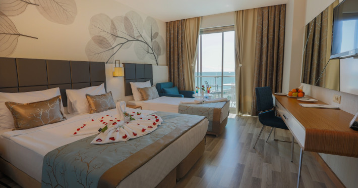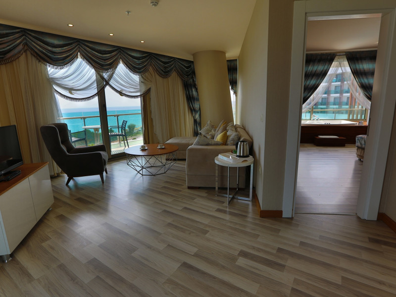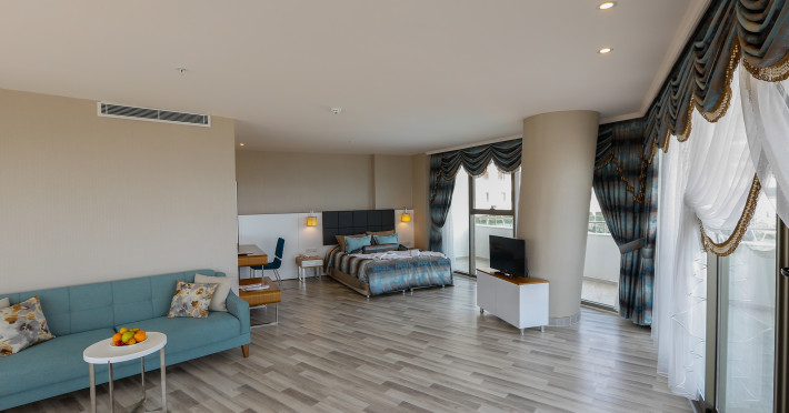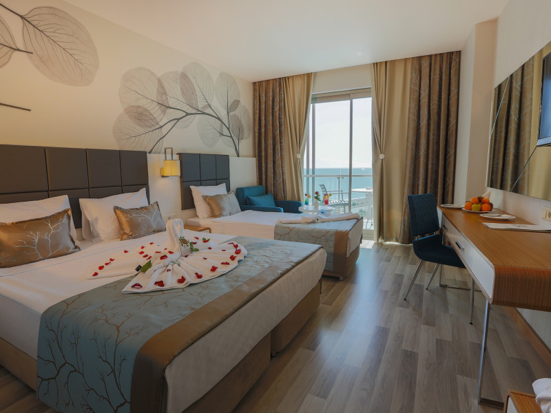 Xoria Deluxe este unul dintre cele mai noi hoteluri de lux din regiunea Alanya, la 115 km de Aeroportul Antalya și la 55 km de Aeroportul Gazipașa. Echipa noastră de personal experimentat și instruit, dar mai important, motivat, este gata să vă indeplinească dorințele.Toate camerele sunt complet echipate cu sisteme multimedia interactive, televizor cu ecran plat, acces wireless la internet, telecomandă (aer condiționat central) și materiale bouclé. Există tot ce vă puteți aștepta de la un confort și lux modern.