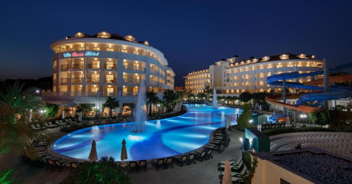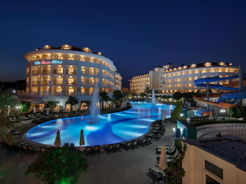 După o selectie de preparate turcesti, thailandeze si caraibiene, oaspetii pot urmări spectacole cu muzică live in amfiteatru sau pot merge la discotecă. Există un club al copiilor, unde o echipă de profesionisti organizează diferite activităti de divertisment.