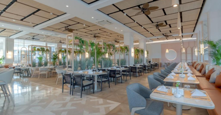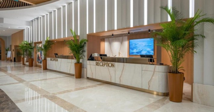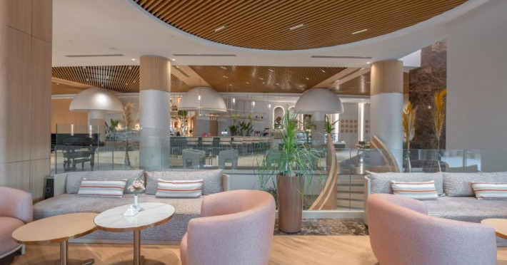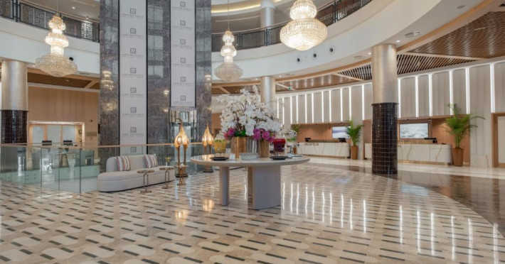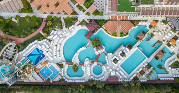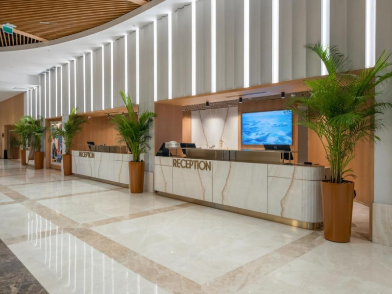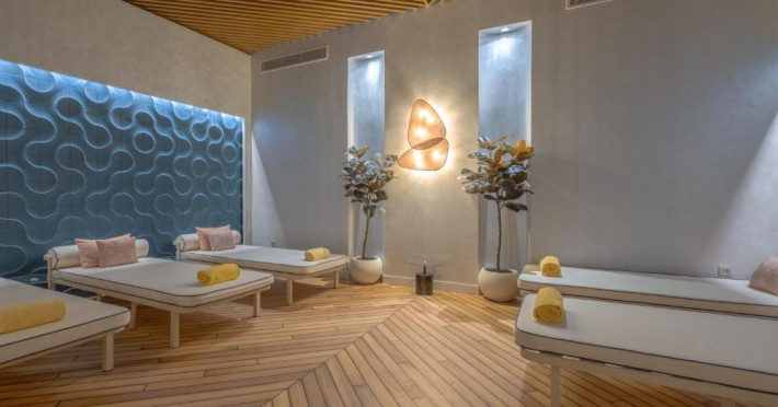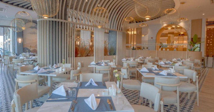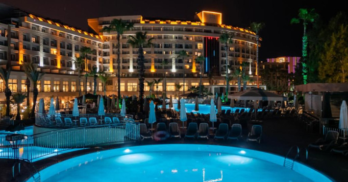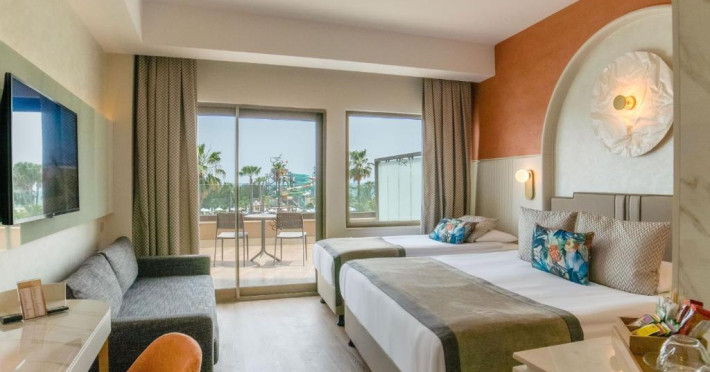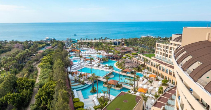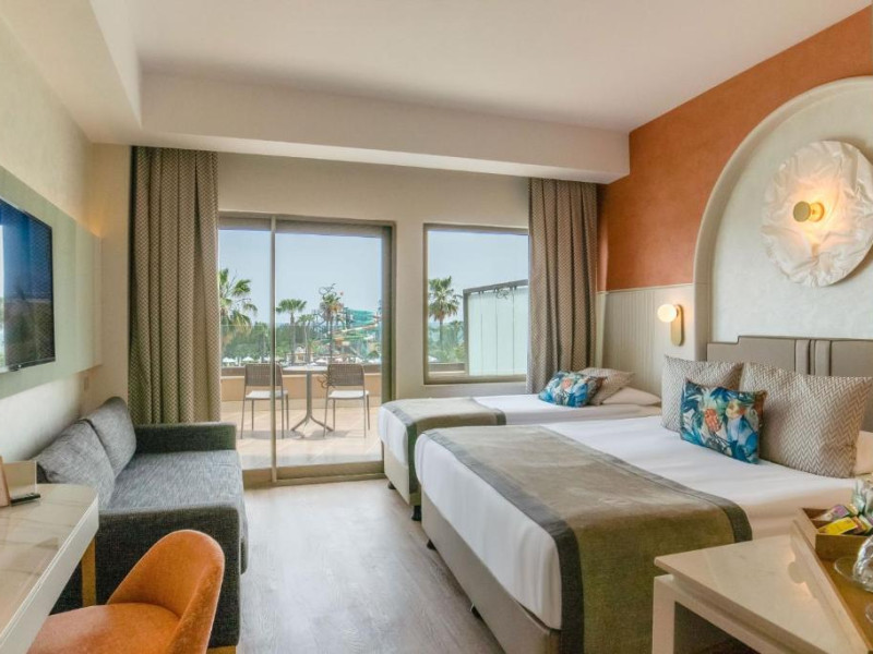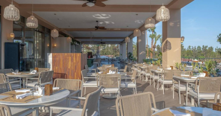 Acest hotel se află la malul mării, pe coasta mediteraneană. Oferă plajă privată cu steag albastru, centru spa si piscină mare in aer liber, cu tobogane de apă. Hotelul are design interior luxos și oferă camere moderne și WiFi gratuit in zonele publice.