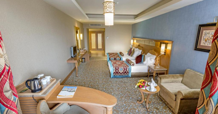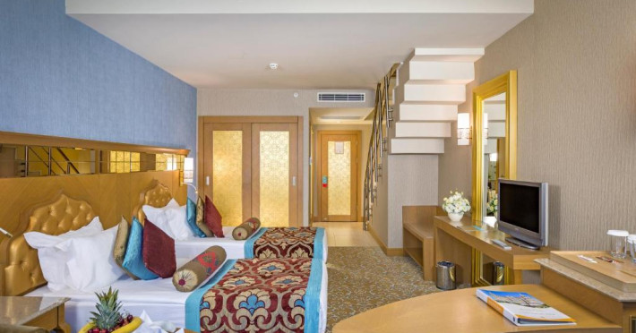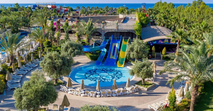 Situat langă plaja Lara din Antalya, acest complex luxos de 5 stele este construit pe un domeniu amenajat cu suprafața de 5,3 hectare. Oferă un centru spa, piscine in aer liber cu tobogane de apă, precum și un parc de distracții.