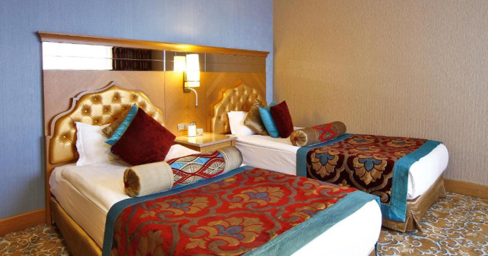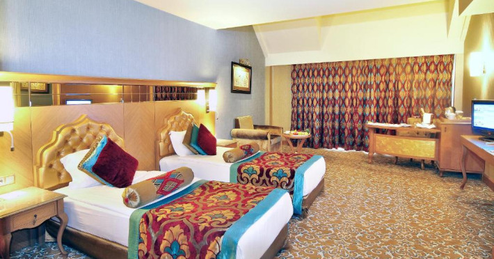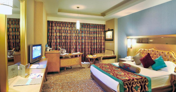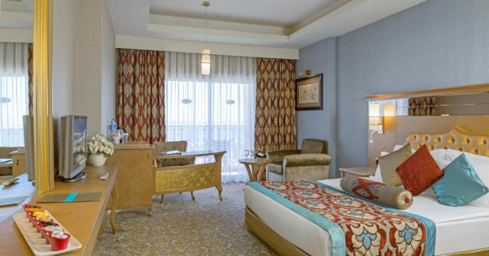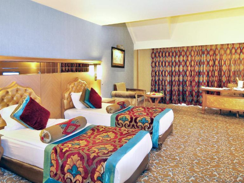 Camerele de la Royal Holiday Palace au un decor somptuos și imbină facilitățile moderne cu elemente tradiționale. Toate sunt dotate cu WiFi gratuit, TV cu ecran plat cu canale prin satelit, minibar și facilități pentru prepararea de ceai și cafea.