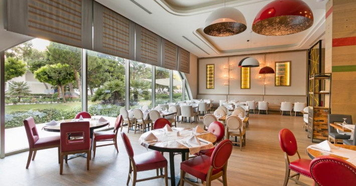 Titanic Deluxe Lara se află la mai puțin de 13 km de Aeroportul Antalya. Hotelul este la nici 5 minute de mers pe jos de coasta nisipoasă a orașului Antalya, unde se organizează meciuri de volei.