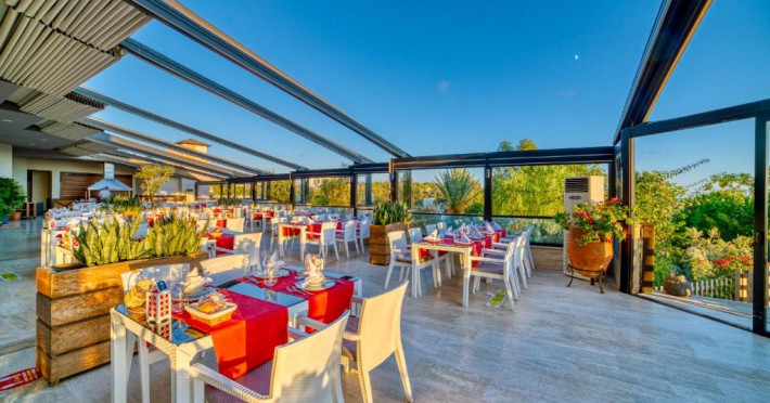 Acest complex situat la malul mării, pe coasta mediteraneană, oferă plajă privată și piscină in aer liber. Complexul are centru spa și camere cu aer condiționat, inconjurate de grădini inverzite. Zona de plajă este ideală pentru a profita de calmul brizei mediteraneene și de mare.