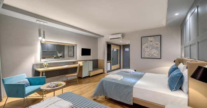 Acest hotel pune la dispoziția oaspeților camere cu aer condiționat, dulap pentru haine, cafetieră, un minibar, cutie de valori, televizor cu ecran plat, terasă și baie proprie cu bideu. Baia proprie oferă un duș, articole de toaletă gratuite și un uscător de păr. La Numa Bay Exclusive Hotel - Ultra All Inclusive, fiecare cameră are lenjerie de pat și prosoape.
