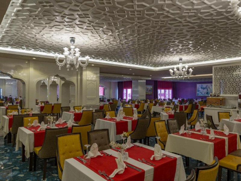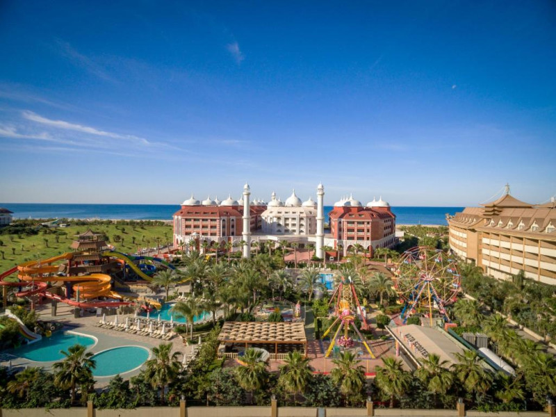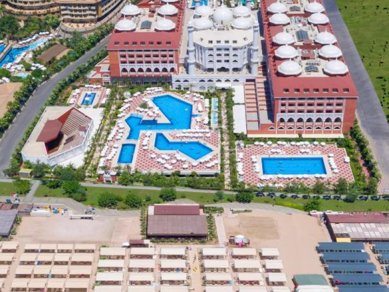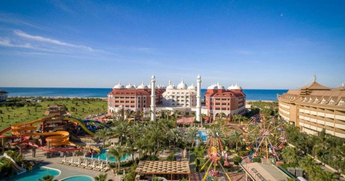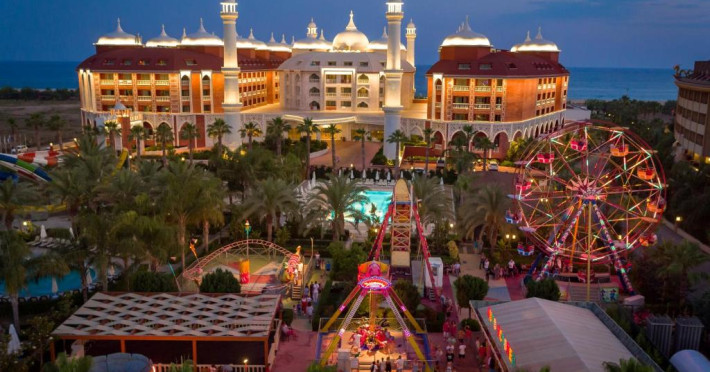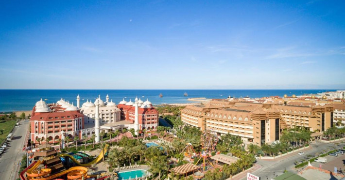 Royal Taj Mahal Hotel se află pe malul mării in Side, la 2 minute de mers pe jos de Plaja publică din Evrenseki, și pune la dispoziție diverse facilități, printre care o grădină, o zonă de plajă privată și un bar. Această proprietate include o recepție deschisă nonstop, precum și un restaurant, un parc acvatic și un teren de joacă pentru copii. Acest hotel include o piscină in aer liber, un centru de fitness, divertisment de seară și un club pentru copii.