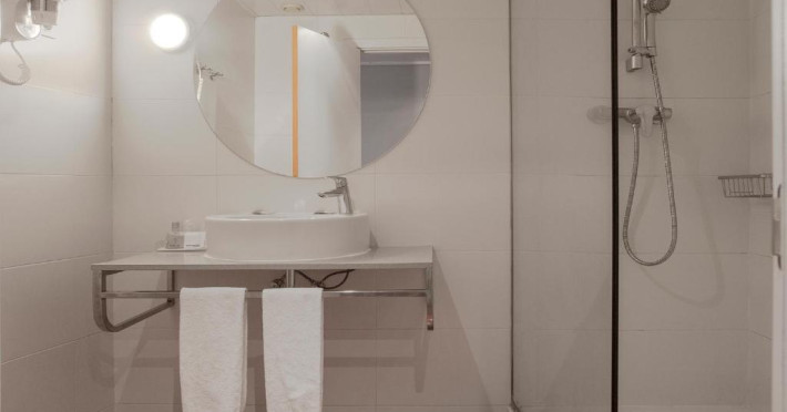 Camerele hotelului Vella Ciutat au ferestre mari și TV cu ecran plat. Băile moderne sunt dotate cu duș.