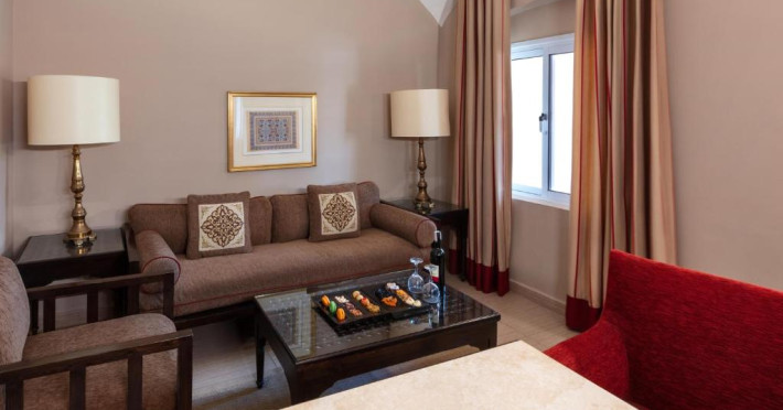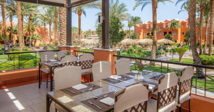 Restaurantul El Hambra este restaurantul principal si serveste micul dejun, pranzul si cina tip bufet. Barul El Shamousa, situat la piscină oferă băuturi si gustări generoase. Barul din hol este deschis nonstop și oferă ceai traditional.