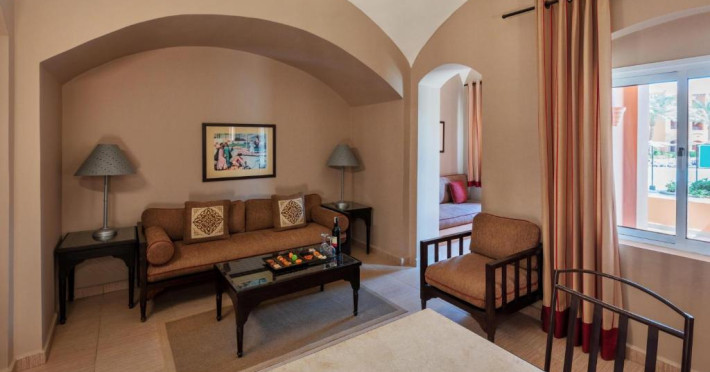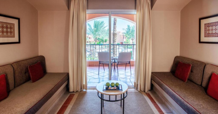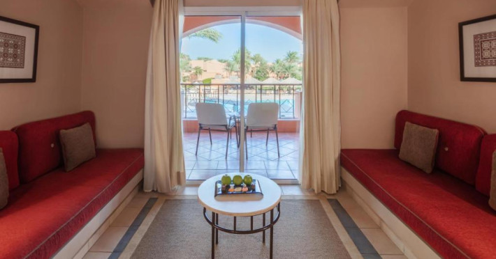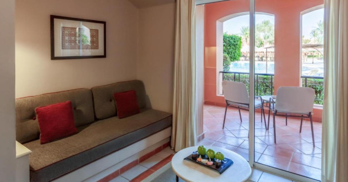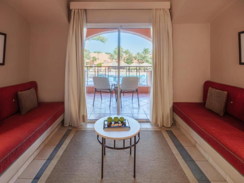 Jaz Makadi Oasis and Family Resort oferă camere cu aer conditionat si balcon cu vedere la zona piscinei si la grădină.
