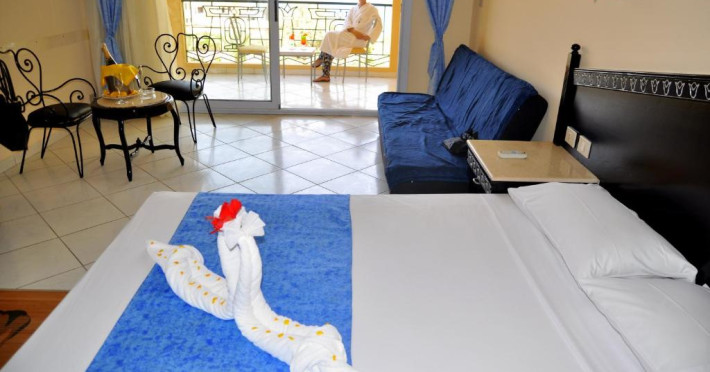 Camerele luminoase de la King Tut sunt dotate cu aer condiționat și TV prin satelit. Fiecare cameră este dotată cu mobilier din lemn inchis la culoare și lenjerie de pat albă.