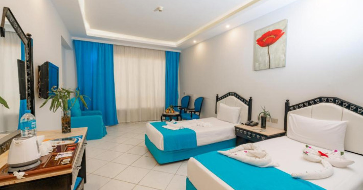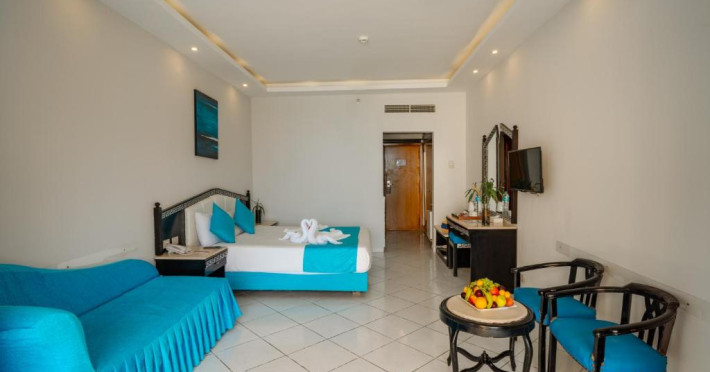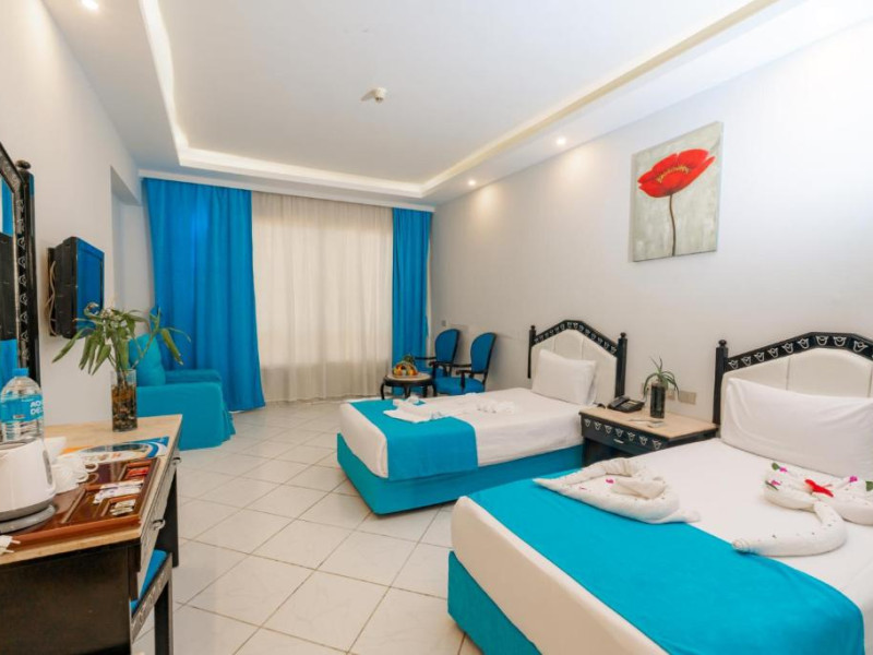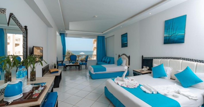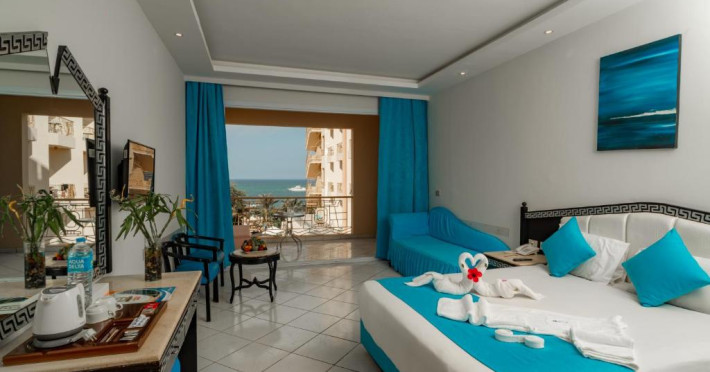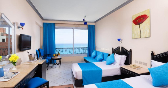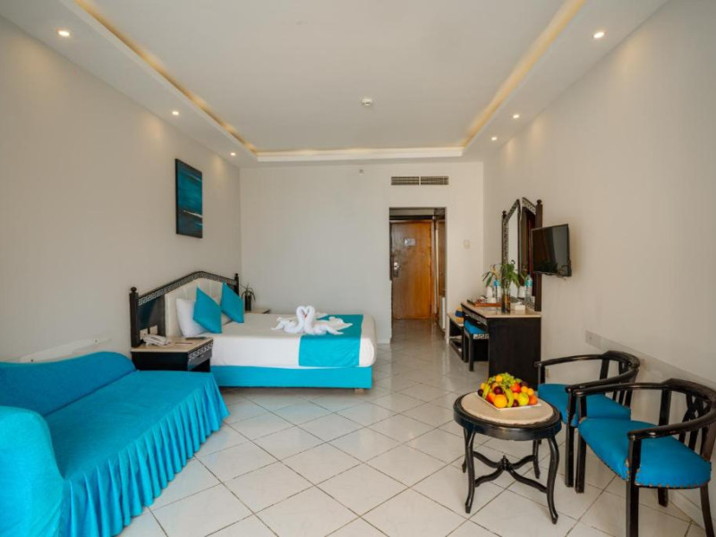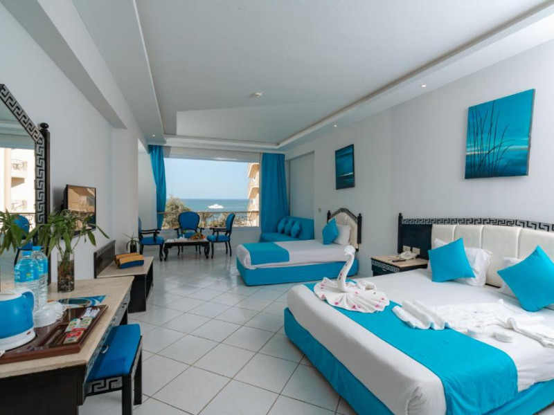 La doar 5 km de Aeroportul Hurghada, complexul all-inclusive King Tut Resort oferă Wi-Fi gratuit, o piscină mare și acces direct la plajă. Camerele au balcoane private, cu vedere la reciful de corali.
