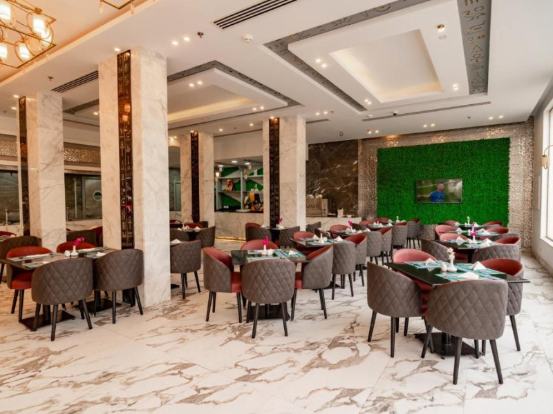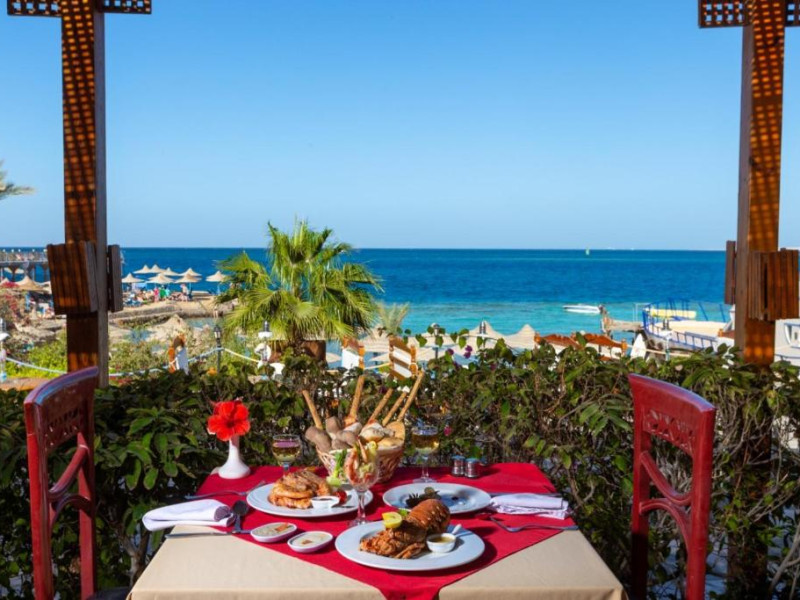 King Tut Hurghada are 3 restaurante, inclusiv Love Boat, care oferă mese romantice și vederi panoramice la Marea Roșie. Pentru ceaiuri asiatice și narghilea, oaspeții pot vizita cortul Sahara in stil beduin.